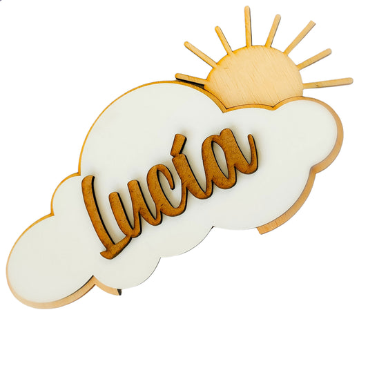 MEDIDOR INFANTIL DE MADERA CON NOMBRE (ARCOIRIS, SOL Y LUNA)