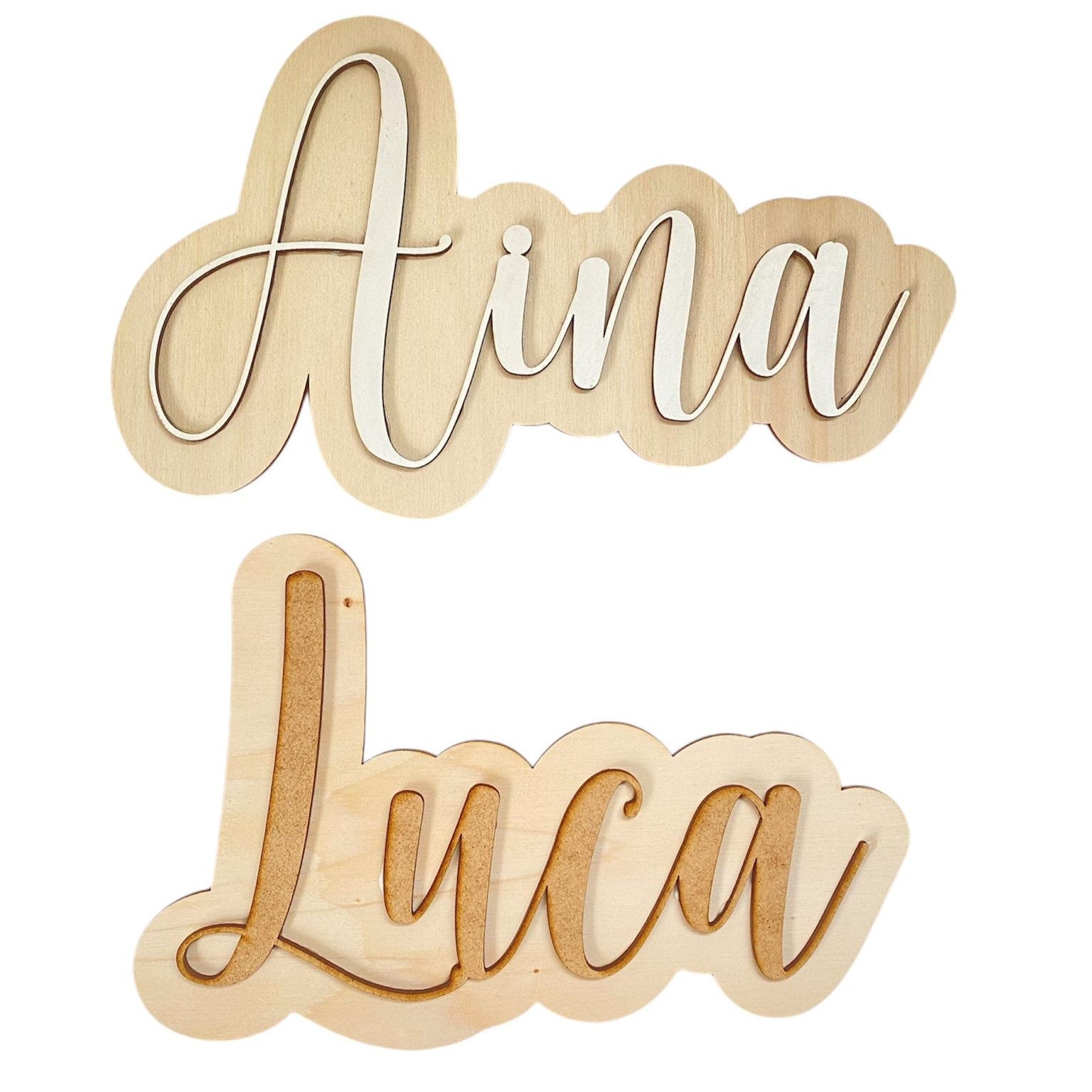 Colores disponibles: Puedes escoger el nombre en color blanco, madera, negro, mint, rosa, rojo, amarillo, azul o púrpura.
